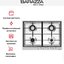 Сзади на варочной панели располагаются две конфорки «Шеф» с двумя рядами пламени, направленного к центру: дно посуды нагревается быстро и равномерно. Спереди находятся стандартная и вспомогательная конфорки. Для предотвращения утечки газа все конфорки оснащены системой «газ-контроль». Варочная панель может подключаться к газу в баллонах: форсунки входят в комплект.