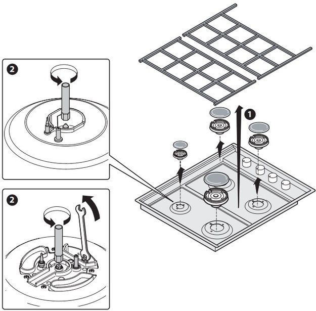 Решетка газовой варочной панели служит для удобного и устойчивого размещения посуды при приготовлении пищи. Кроме того, решетка — важный и заметный элемент дизайна, так что при выборе модели ей следует уделить особое внимание. В первую очередь необходимо проверить, что решетка хорошо закреплена на поверхности — обычно она вставляется в специальные отверстия или углубления. Затем стоит убедиться, что на ней будет хорошо размещаться ваша привычная посуда.