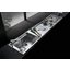 Хорошей альтернативой рамке является металлический профиль, который обычно устанавливается только спереди или сбоку. Он также не позволяет жидкости стекать на столешницу, но не «съедает» полезную площадь. Что касается варочных панелей без рамки, неизменной популярностью пользуются модели со скошенным краем. Такая обработка называется фацетной — внешняя сторона панели имеет огранку под углом 45 градусов. Такая панель очень легко чистится и эффектно выглядит, а современные методы огранки защищают края от сколов.