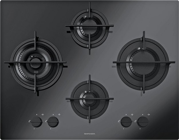 Газовая варочная панель Barazza опирается краями на столешницу, поэтому ее края возвышаются на несколько миллиметров. Прямой край и слегка скругленные углы удобны и безопасны для уборки рабочего пространства вокруг. Модель входит в серию MOOD, которая отличается лаконичным современным дизайном: простые формы, отсутствие декоративных украшений. Плоские крышки горелок не только дополняют визуальный образ, но и обеспечивают равномерное и безопасное распределение пламени под установленной посудой. Над каждой конфоркой установлены индивидуальные чугунные держатели, которые повышают устойчивость тяжелых кастрюль и широких сковород.