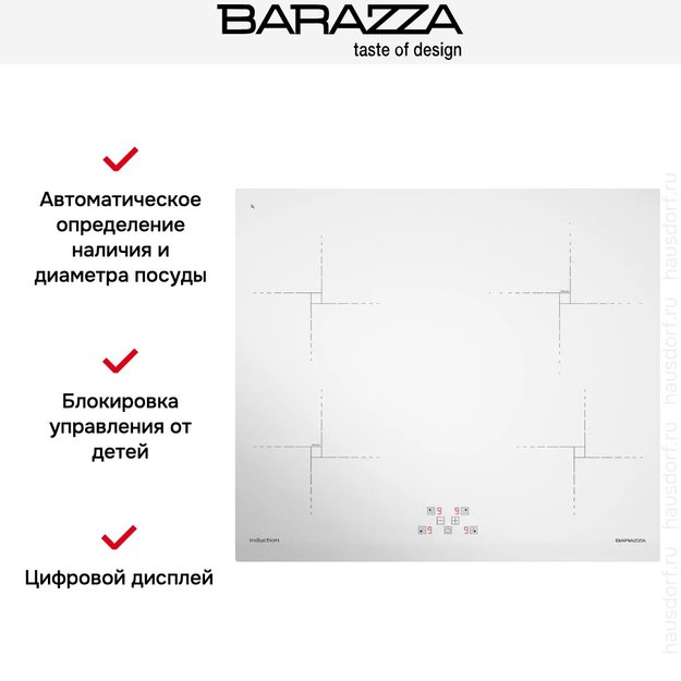 Четырехконфорочная варочная панель — самый распространенный выбор, так как эта конфигурация привычна и понятна, есть выбор между зонами с разной мощностью, можно готовить сразу несколько блюд. Данная модель отвечает всем требованиям, выделяясь из общей линейки белой стеклокерамикой в качестве основного материала. Индукционные панели светлых оттенков еще представлены меньше, чем черные, поэтому она — хороший вариант для белой или кремовой кухни.