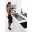 В среднем у газовых моделей этот показатель больше, чем у электрических. Высота газовых варочных поверхностей составляет обычно от 4 до 10 см: важное значение при выборе модели имеет и толщина столешницы. Известно, что стандартная толщина столешницы из ДВП составляет около 38 мм: исходя из этого, высота газовых варочных панелей чаще всего составляет 4–5 см. Если варочная панель имеет большую высоту, ее обычно заглубляют в столешницу, стараясь при этом не повреждать внутреннюю сторону. Для этого под ней устанавливают дополнительную полку (фальшпанель), за счет которой уменьшается пространство в тумбе.