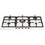 Газовая варочная панель выполнена в классическом дизайне Heritage, покрыта эмалью цвета слоновой кости. Хромированная фурнитура и черные чугунные решетки отлично сочетаются с покрытием основной поверхности. Латунные горелки разной мощности позволяют одновременно готовить блюда на сильном и медленном огне. Центральная конфорка Dual WOK имеет три ряда пламени.