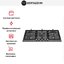 Газовая варочная панель с пятью латунными конфорками разной мощности. В вашем распоряжении горелка с тройным рядом пламени Dual WOK, расположенная по центру, одна быстрая, две стандартных и одна вспомогательная. Поворотные ручки расположены фронтально, механическое управление удобно и безопасно. Автоматический поджиг позволяет включить прибор одним нажатием.