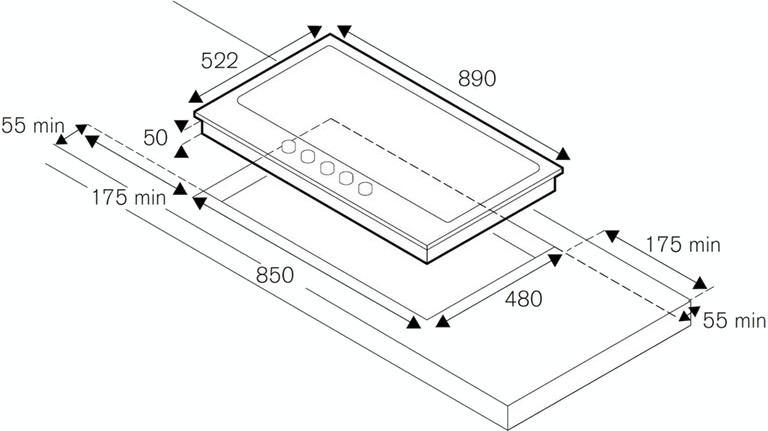 Устройство представляет собой независимую газовую варочную поверхность шириной 89 см, оснащенную пятью конфорками разной мощности — от мощной центральной горелки для быстрого кипячения до деликатных зон для медленного томления. Такая компоновка обеспечивает максимальную гибкость при одновременном приготовлении нескольких блюд. Для встраивания требуется ниша размером 85×48 см, а минимальная высота корпуса — всего 6,5 см — позволяет аккуратно интегрировать панель в любую столешницу. Безрамочное исполнение подчеркивает целостность дизайна и упрощает уход за поверхностью.