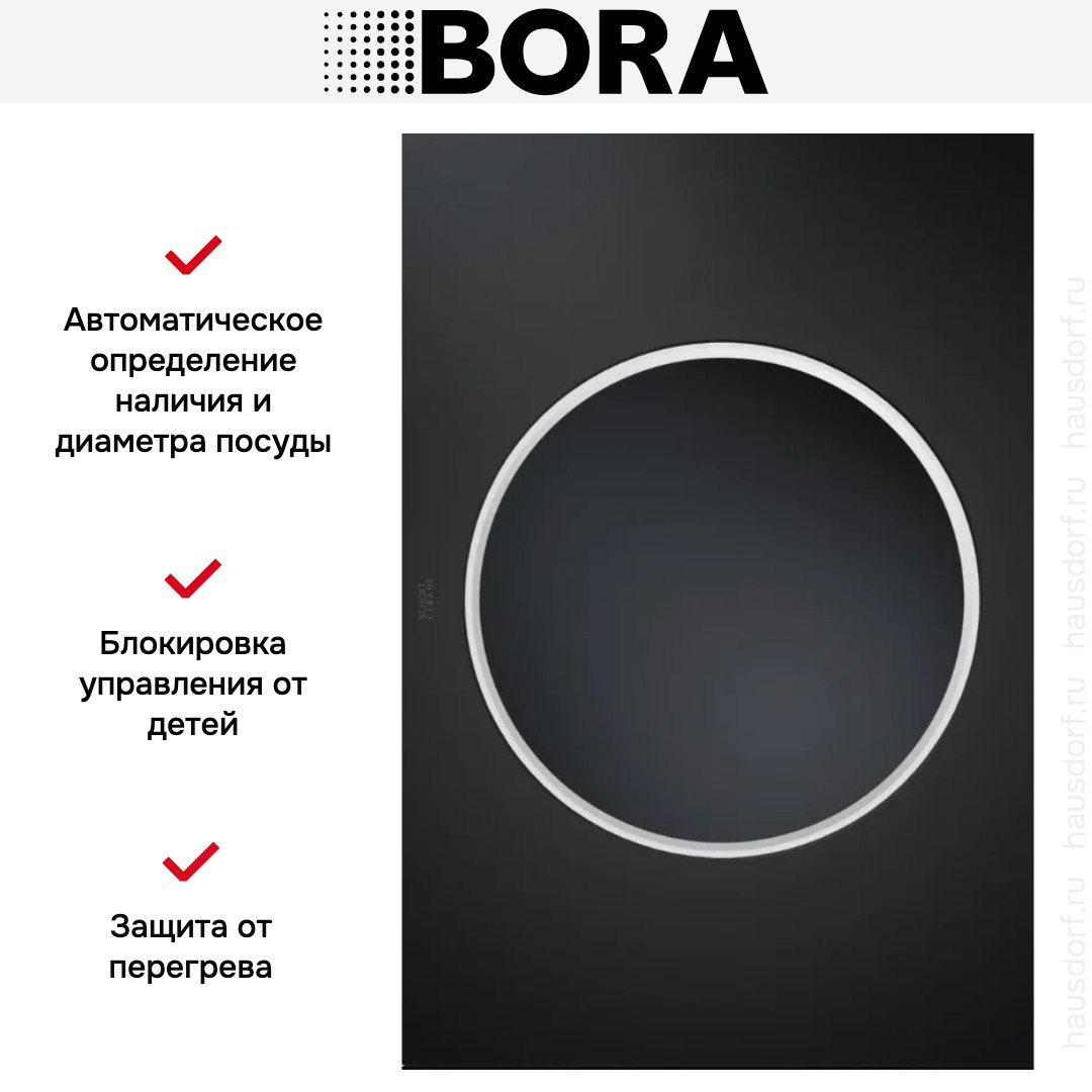 Варочная панель WOK BORA PKIW3 — индукционная независимая электрическая модель с профессиональным обликом. Плоская бесшовная поверхность добавляет кухне минималистичной эстетики и облегчает уборку, а контраст серебристых деталей и черного стекла выглядит дорого и выдержано. Стеклокерамическое покрытие сочетает прочность и простоту ухода; оно устойчиво к пятнам и легко очищается мягкой губкой.