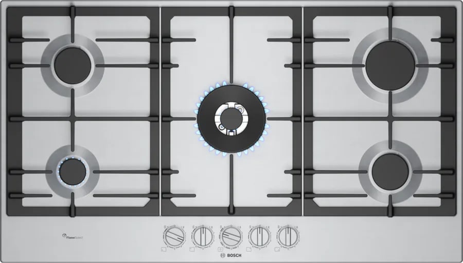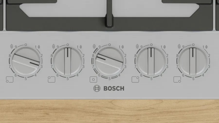 Технология FlameSelect в современных газовых варочных панелях Bosch обеспечивает ступенчатую регулировку пламени на 9 предустановленных уровнях. Конфорки с FlameSelect позволяют точно задавать интенсивность нагрева поворотом специального переключателя, не требуя визуального контроля.