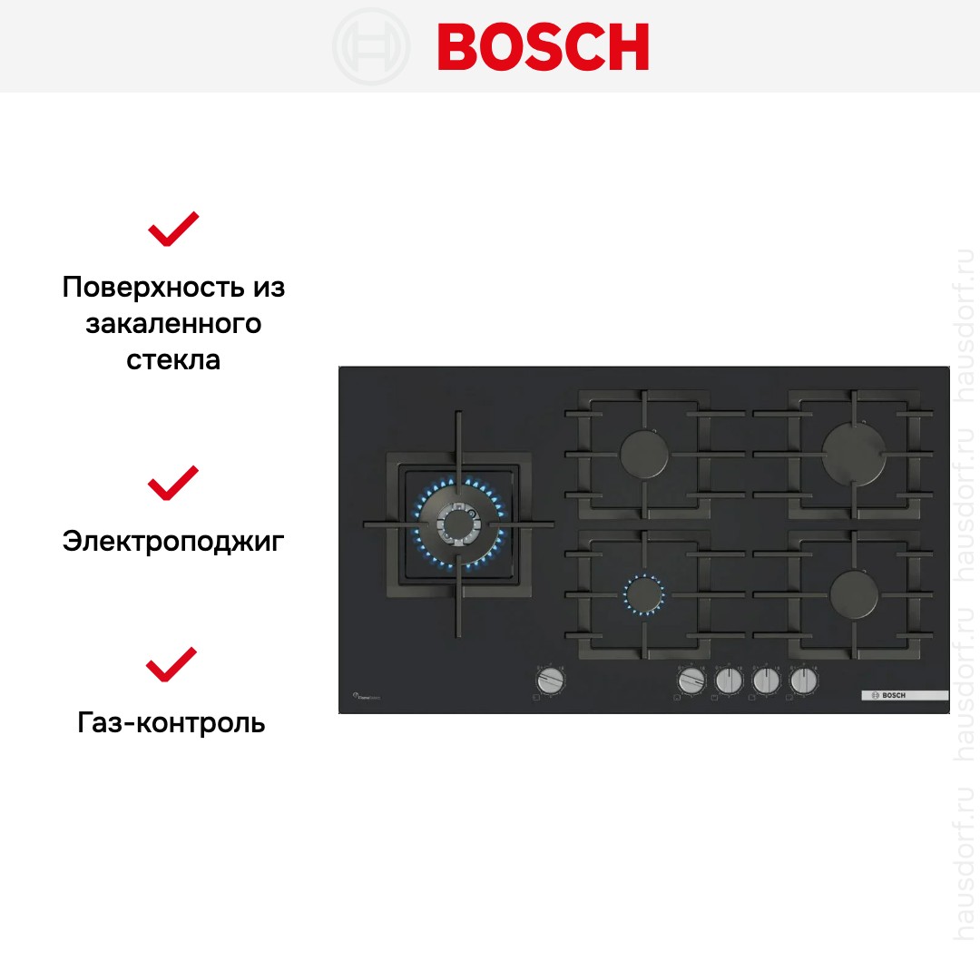 Модель Бош PPM9A6I40 входит в дизайн-линейку: Serie | 6. Цвет — черный. Благодаря отсутствию рамки она отлично впишется в интерьер и не займет лишнее место на столешнице, которое можно использовать для работы. Открытый огонь не страшен ни вашей посуде, ни вам, так как горелки надежно закрыты решетками. Материал самой поверхности: закаленное стекло. Управление этой моделью механическое. Для переключения уровней нагрева, выбора функций используются следующие переключатели: поворотные. Простая система контроля за прибором делают его более универсальным, ведь разобраться сможет кто угодно.