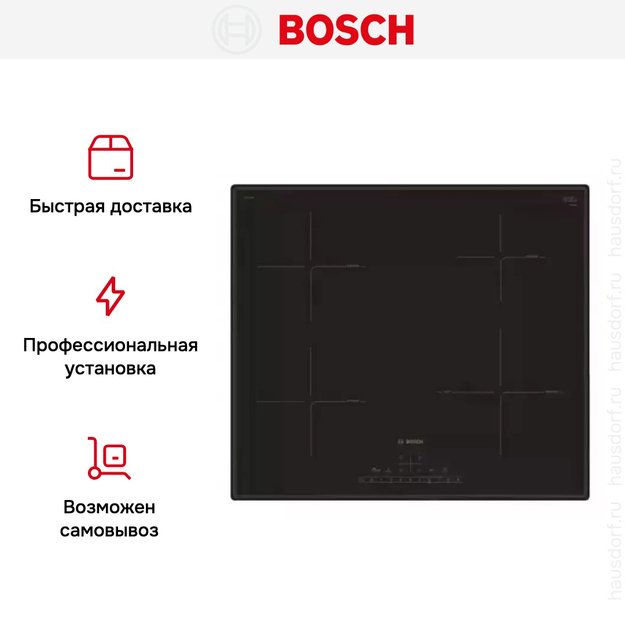 Система DirectSelect, или управление прямого доступа, реализованное в индукционных варочных панелях Bosch, позволяет выбирать зону нагрева и регулировать мощность конфорки, а также задавать дополнительные опции одним прикосновением, без многократного последовательного нажатия на кнопки.