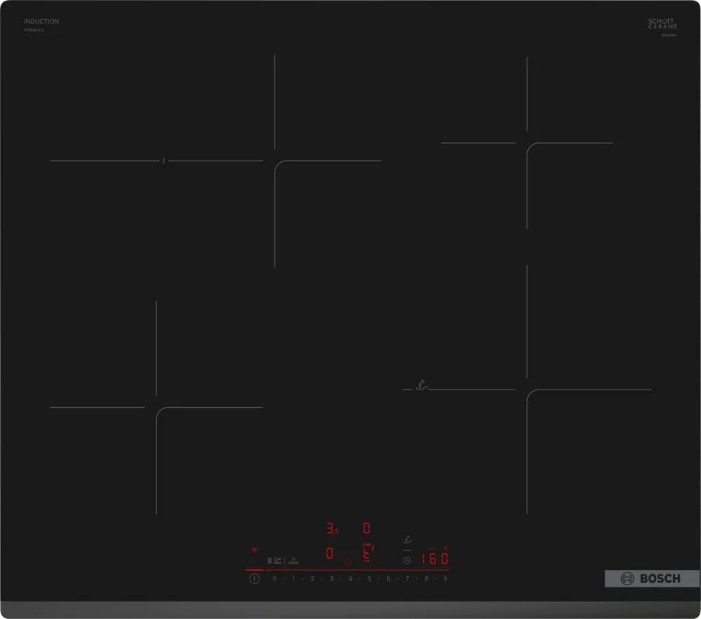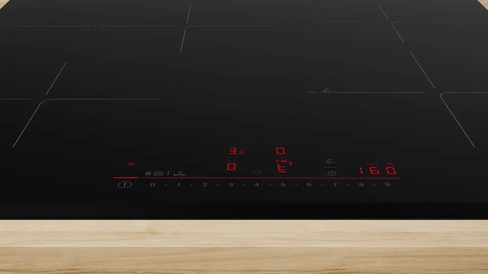 Функция re-Start в индукционных варочных панелях Bosch служит для восстановления настроек приготовления через короткое время после несвоевременного выключения, которое может произойти из-за случайного нажатия на кнопку или из-за попадания на поверхность жидкости или посторонних предметов.