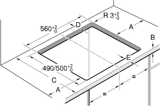 Отверстие в нише выполняют, исходя из размеров самой варочной панели — они должны соответствовать друг другу либо немного превышать размеры выреза. При выборе наиболее распространенной варочной панели с 4 конфорками в столешнице вырезается отверстие шириной 59 см и глубиной около 49-50 см. Толщина столешницы должна быть немного меньше, чем высота варочной панели, в противном случае панель придется заглубить, чтобы она не слишком выступала.