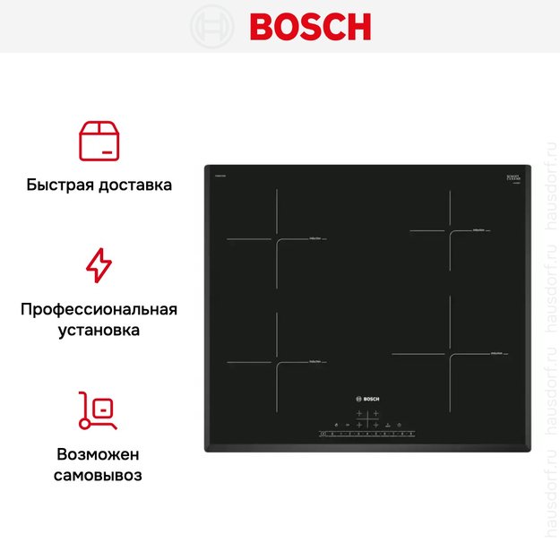Система DirectSelect, или управление прямого доступа, реализованное в индукционных варочных панелях Bosch, позволяет выбирать зону нагрева и регулировать мощность конфорки, а также задавать дополнительные опции одним прикосновением, без многократного последовательного нажатия на кнопки.