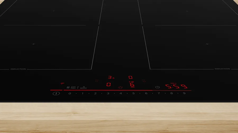 Функция re-Start в индукционных варочных панелях Bosch служит для восстановления настроек приготовления через короткое время после несвоевременного выключения, которое может произойти из-за случайного нажатия на кнопку или из-за попадания на поверхность жидкости или посторонних предметов.
