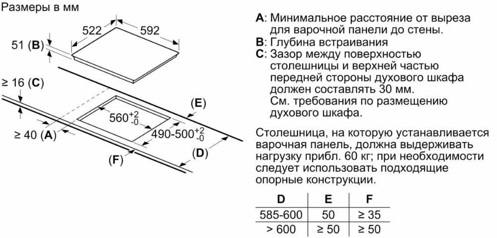 Наиболее распространенное значение глубины варочной поверхности — от 52 до 60 см: такие габариты могут иметь панели с любым количеством конфорок — от двух до шести или семи. Варочные поверхности с одной конфоркой или те, где конфорки располагаются в один ряд, могут иметь гораздо меньшую глубину — от 38–40 см. Отдельно следует рассматривать варочные панели со встроенной вытяжкой, наличие которой также влияет на глубину варочной панели. Подробные рекомендации по выбору и размещению модели приводятся в инструкции пользователя.