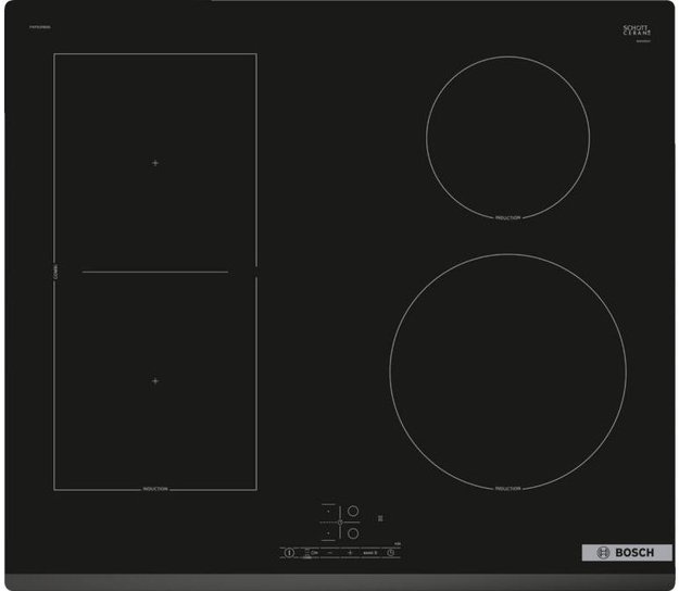 Модель Бош PWP63RBB6E входит в дизайн-линейку: Serie | 4. Цвет — черный. Благодаря отсутствию рамки она отлично впишется в интерьер и не займет лишнее место на столешнице, которое можно использовать для работы. Материал самой поверхности: стеклокерамика SCHOTT CERAN. Управление этой моделью электронное. Для переключения уровней нагрева, выбора функций используются следующие переключатели: сенсорные/TouchControl. Продвинутая система контроля за прибором делают его современным и отвечающим на главные запросы покупателя.