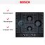 Газовая варочная панель Bosch PCI6A6B90R — независимая панель с ромбовидным расположением конфорок. Она относится к дизайн-линии Serie | 6 и отличается поверхностью из черной эмалированной стали с черной рамкой. На темном фоне выделяется стильная фурнитура серебристого цвета: поворотные механические выключатели расположены на фронтальной части изделия.