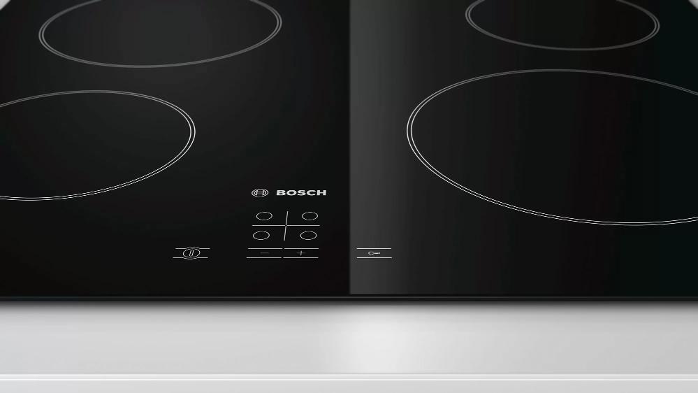 Bosch PKE611D17E — независимая варочная поверхность с четырьмя электрическими конфорками. Для удобства при выборе желаемой зоны нагрева и установке требуемого уровня мощности предусмотрена сенсорная панель управления TouchSelect. Функция ReStart позволяет восстановить рабочие настройки после случайного выключения прибора. Конфорки Hi-Light с вольфрамовой нитью обеспечивают быстрый нагрев при небольшом энергопотреблении. 17-ступенчатая регулировка мощности позволяет выбрать режим для приготовления любого блюда. Двухпозиционный индикатор остаточного тепла предохранит пользователя от ожогов и позволит воспользоваться нагретой конфоркой для разогрева готовой пищи. Стеклокерамическая поверхность без рамки легко чистится.