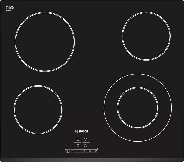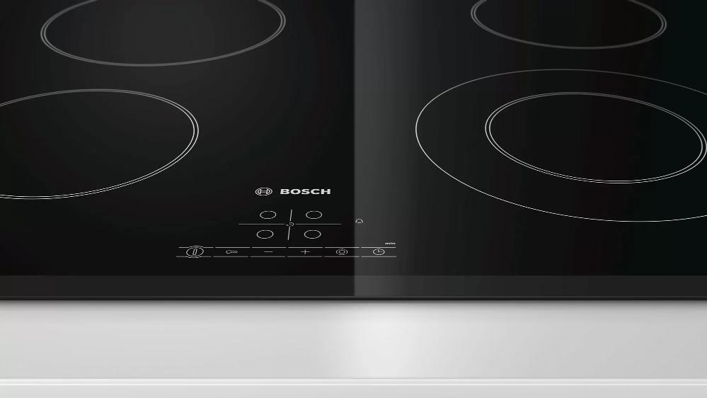 Bosch PKF631B17E — независимая варочная поверхность с сенсорным управлением TouchControl. Модель снабжена четырьмя конфорками быстрого нагрева, одна из которых имеет круглую зону расширения для крупногабаритной посуды. Функция защитной блокировки позволяет предотвратить нежелательное включение устройства.