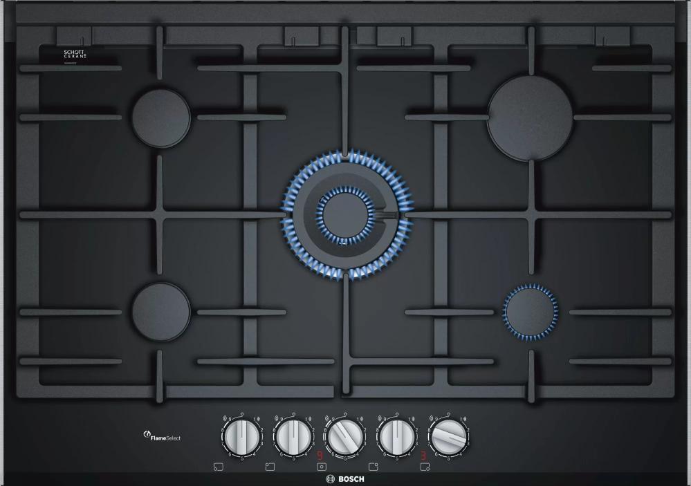 Варочная панель "газ на стеклокерамике" с функцией FlameSelect. Конструкция позволяет выбрать между установкой заподлицо или слегка в приподнятом варианте.