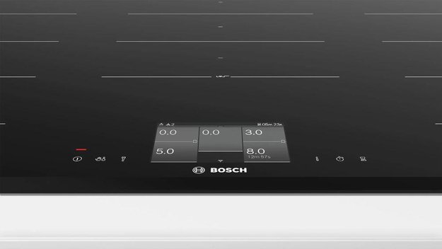 Система DirectSelect, или управление прямого доступа, реализованное в индукционных варочных панелях Bosch, позволяет выбирать зону нагрева и регулировать мощность конфорки, а также задавать дополнительные опции одним прикосновением, без многократного последовательного нажатия на кнопки.
