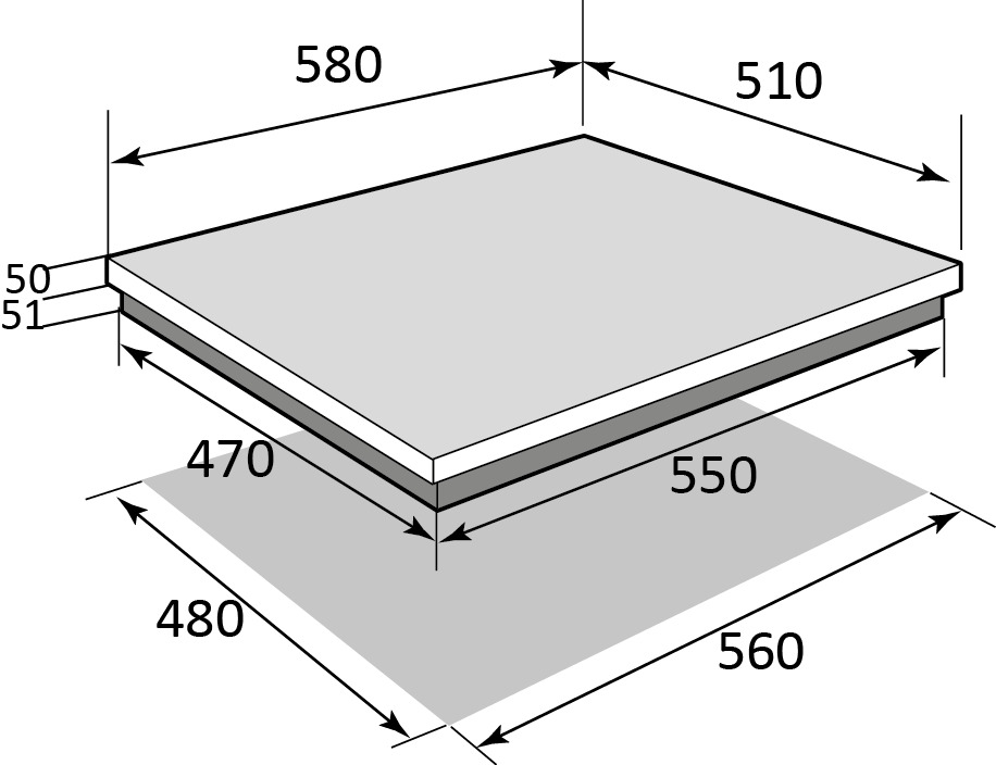 Глубина варочной панели представляет собой расстояние от ближайшей к пользователю ее точки до самой дальней. В первую очередь глубина определяется соответствующими размерами столешницы, куда варочная панель будет встроена, и уже во вторую — количеством и расположением конфорок.
