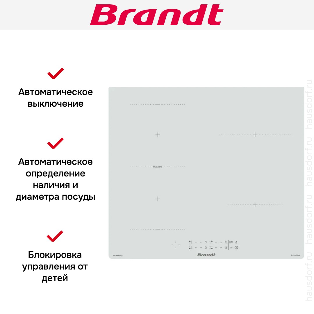 Индукционная варочная панель Brandt BPI364DPW — инновационное решение для современной кухни, объединяющее скорость, безопасность и эстетику в одном компактном устройстве. Эта независимая модель предназначена для встраивания и легко монтируется в стандартную нишу шириной 56 см и глубиной 49 см, при этом её внешние габариты составляют всего 6 × 58 × 51 см, что обеспечивает аккуратное и плотное прилегание к столешнице без зазоров.