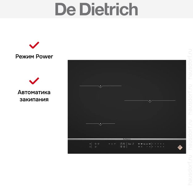 Варочная панель De Dietrich DPI7572X относится к новой коллекции Platinum. Модели из этой коллекции производятся во Франции, их отличают благородные цвета, чистые линии, оригинальные инновационные технологии. Официальная гарантия производителя составляет 12 месяцев.