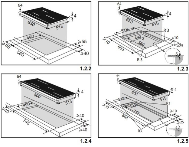 Варочные панели встраиваются в столешницу: они могут располагаться как заподлицо, так и выступать над ее поверхностью. Особенности их расположения зависят от высоты (толщины) варочной панели, а та определяется, как правило, видом нагрева, материалом поверхности и типом подключения — зависимым или независимым.
