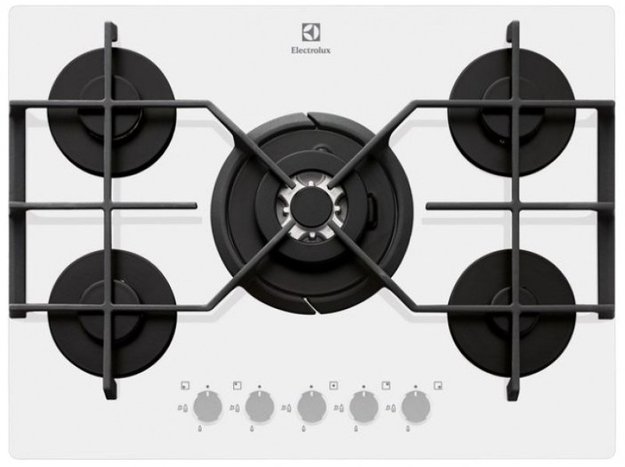 Electrolux EGT 97353 YW — стильная варочная поверхность в универсальном белом цвете. Модель оборудована пятью разноразмерными конфорками, одна из которых имеет три ряда пламени. Технология газового контроля гарантирует безопасную эксплуатацию прибора.