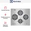 Electrolux EGU 96647 LX — стильная варочная поверхность в элегантном сером оттенке с лаконичным современным дизайном. Несмотря на отсутствие решетки, диаметр горелок и использование чугунных держателей для посуды позволяет ставить на них даже тяжелую и объемную посуду. Кроме того, за плитой в такой конфигурации проще ухаживать. Модель изготовлена из нержавеющей стали и снабжена четырьмя газовыми конфорками с вертикальным пламенем. В комплектацию устройства входят две горелки для ускоренного приготовления, одна горелка повышенной мощности и одна вспомогательная. Удобное ромбовидное расположение конфорок позволяет комфортно и эффективно использовать их во время готовки. Другим плюсом является то, что от высоких температур не будут повреждаться элементы кухонного гарнитура. Панель управления с поворотными регуляторами находится на передней части устройства. Переключатели расположены симметрично по обе стороны модели, в достаточном отдалении от огня.