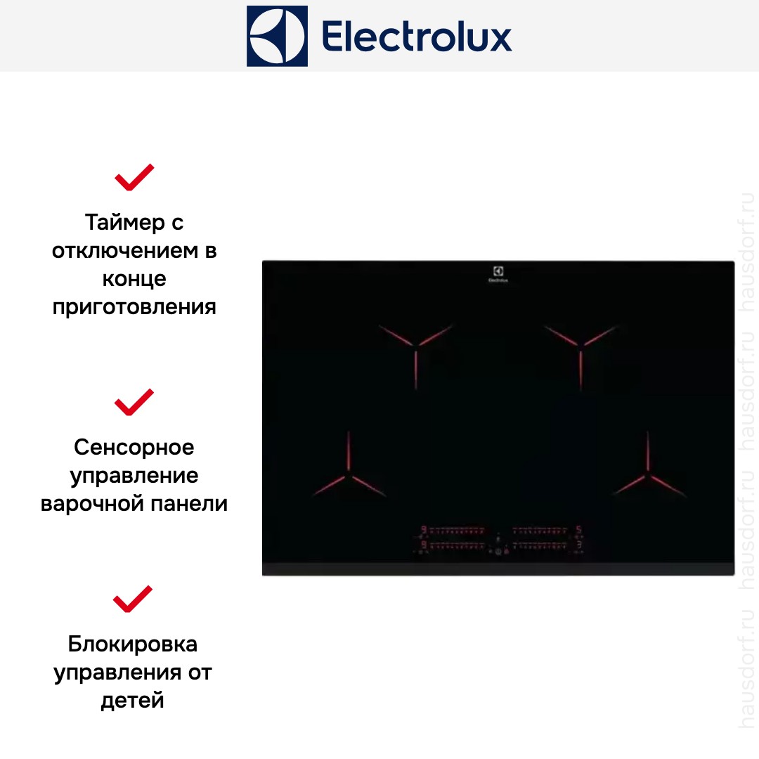 Таймер с отключением в конце приготовления в электрических варочных панелях Electrolux предназначается для безопасной, удобной и экономичной готовки. Длительность приготовления задается при помощи кнопок сенсорного меню для каждой зоны нагрева: о том, что блюдо готово, оповещает звуковой сигнал.