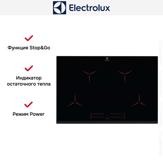Варочная панель работает на индукционном нагреве — это значит, что повышается температура непосредственно посуды, в которой готовится блюдо. Таким образом промежуточная ступень с предварительным нагревом конфорки пропускается — сокращается время, повышается безопасность. Количество конфорок в этой модели: 4.
