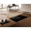 Вытяжка, встроенная в варочную панель — достаточно удобный вариант, позволяющий сэкономить место в кухне. Такая конструкция позволяет лучше улавливать испарения, не давая им распространяться по всему помещению, и способствует более качественной очистке воздуха. Большинство подобных моделей может работать только в режиме рециркуляции воздуха, с удалением капель жира, сажи, неприятных запахов при помощи системы фильтров. Работу в режиме отвода загрязненного воздуха через систему вентиляции организовать довольно сложно, поскольку вытяжка располагается низко над полом. Часто варочная панель находится на кухонном острове, что также мешает присоединению к вентиляции. Еще одна особенность подобных моделей состоит в том, что под варочной панелью нельзя разместить духовку или другую технику, так как место будет занято.