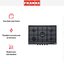Выбор газовой варочной панели чаще всего обусловлен тем, что в частный дом или квартиру проведен именно газ в качестве обогрева. Работать с этой моделью довольно просто, так как мощность нагрева видна невооруженным взглядом — по силе огня в горелке. Количество конфорок в этой модели: 5. Горелки с тройной короной имеют несколько ступеней нагрева — в зависимости от них образуется несколько кругов пламени.