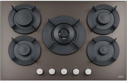 Выбор газовой варочной панели чаще всего обусловлен тем, что в частный дом или квартиру проведен именно газ в качестве обогрева. Работать с этой моделью довольно просто, так как мощность нагрева видна невооруженным взглядом — по силе огня в горелке. Количество конфорок в этой модели: 5. Горелки с двойной короной позволяют увеличивать мощность нагрева в зависимости от диаметра посуды.