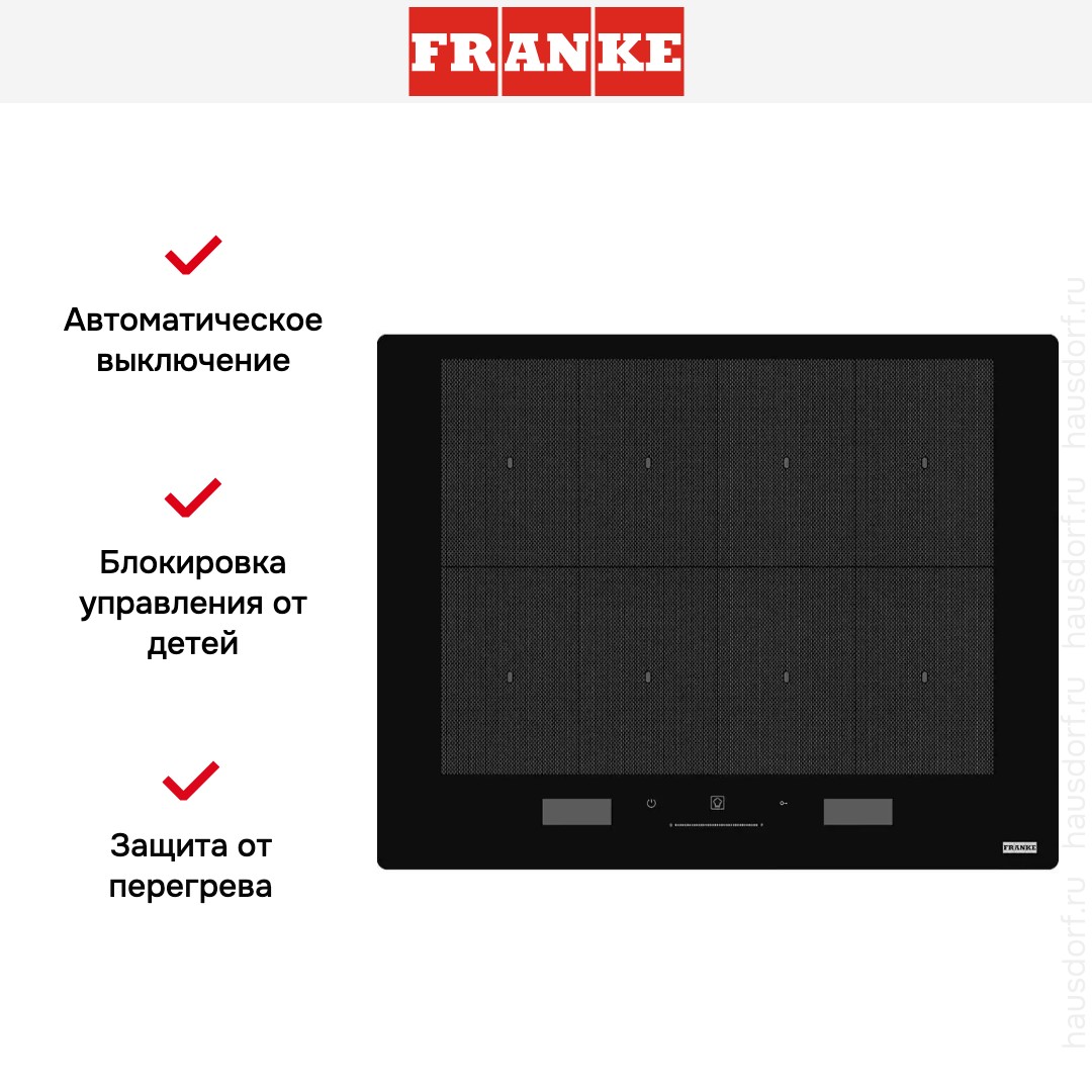 Модель Франке FMY 658 I FP BK входит в дизайн-линейку: Mythos. Цвет — черное стекло. Материал самой поверхности: стеклокерамика. Управление этой моделью электронное. Для переключения уровней нагрева, выбора функций используются следующие переключатели: сенсорные/TouchControl, сенсорный слайдер/TouchSlider. Продвинутая система контроля за прибором делают его современным и отвечающим на главные запросы покупателя.