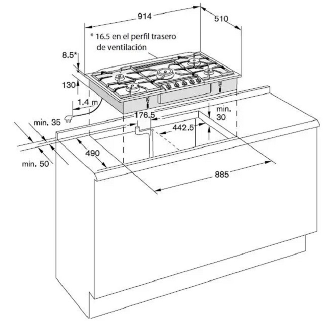 В среднем у газовых моделей этот показатель больше, чем у электрических. Высота газовых варочных поверхностей составляет обычно от 4 до 10 см: важное значение при выборе модели имеет и толщина столешницы. Известно, что стандартная толщина столешницы из ДВП составляет около 38 мм: исходя из этого, высота газовых варочных панелей чаще всего составляет 4–5 см. Если варочная панель имеет большую высоту, ее обычно заглубляют в столешницу, стараясь при этом не повреждать внутреннюю сторону. Для этого под ней устанавливают дополнительную полку (фальшпанель), за счет которой уменьшается пространство в тумбе.