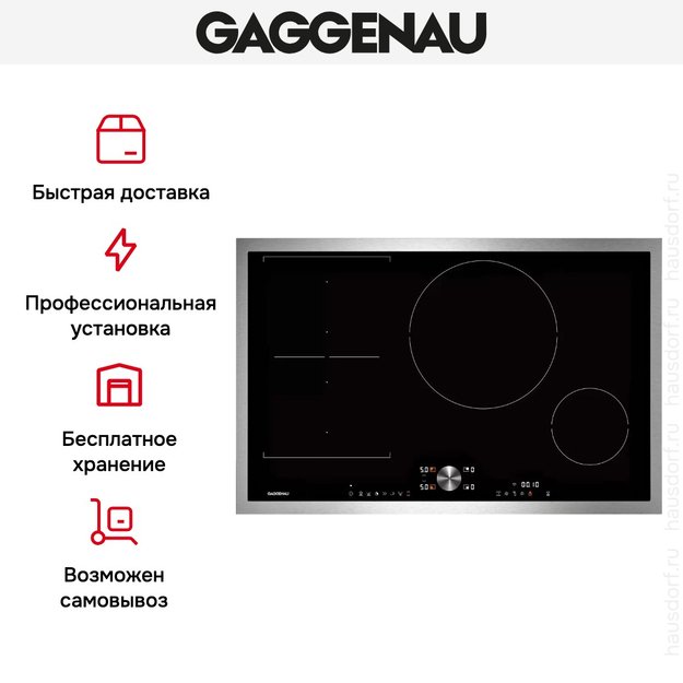 Gaggenau CI282111 — индукционная варочная панель с рамкой из нержавеющей стали. Имеет 4 зоны нагрева разной мощности, в том числе и прямоугольные, которые могут быть объединены в зону flex. Температуру посуды можно контролировать с помощью сенсора нагрева. Безопасность эксплуатации обеспечивают двухпозиционные индикаторы остаточного тепла.