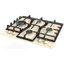 Выбор газовой варочной панели чаще всего обусловлен тем, что в частный дом или квартиру проведен именно газ в качестве обогрева. Работать с этой моделью довольно просто, так как мощность нагрева видна невооруженным взглядом — по силе огня в горелке. Количество конфорок в этой модели: 4. Горелки с двойной короной позволяют увеличивать мощность нагрева в зависимости от диаметра посуды.