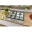 Цвет — нержавеющая сталь. Благодаря отсутствию рамки она отлично впишется в интерьер и не займет лишнее место на столешнице, которое можно использовать для работы. Открытый огонь не страшен ни вашей посуде, ни вам, так как горелки надежно закрыты решетками. Материал самой поверхности: нержавеющая сталь. Управление этой моделью механическое. Для переключения уровней нагрева, выбора функций используются следующие переключатели: поворотные. Простая система контроля за прибором делают его более универсальным, ведь разобраться сможет кто угодно.