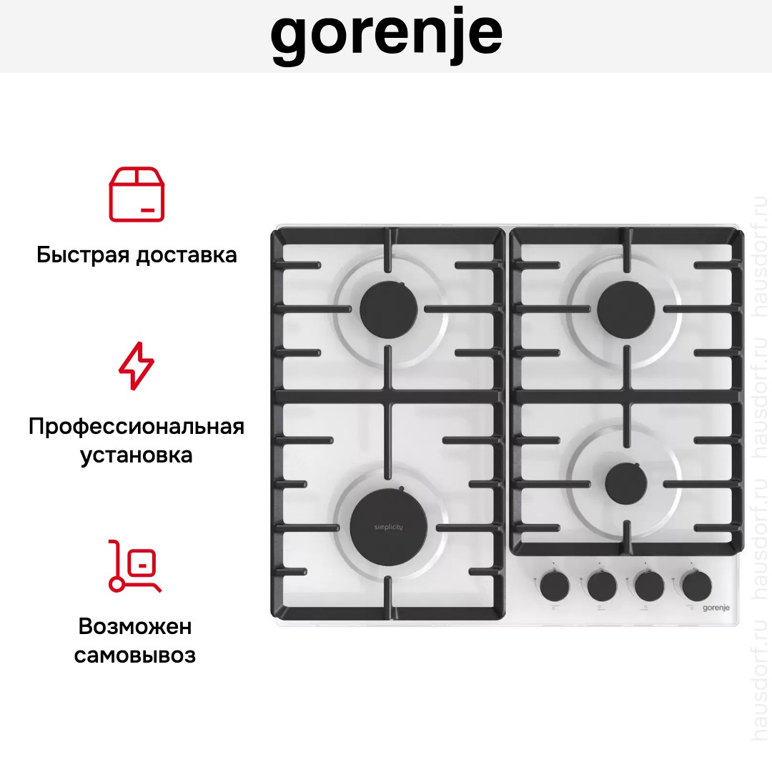Варочная панель Gorenje GT642SYW — элегантная модель от именитого производителя. Поверхность из закаленного стекла белого цвета смотрится стильно и современно. Она легко очищается от загрязнений, отличается устойчивостью к появлению глубоких царапин и выцветанию. Светлый оттенок является практичным, так как на нем, в отличие от темных вариантов, менее заметны разводы или следы от рук. Дополняют образ черные регуляторы. Ручки располагаются справа, что позволяет увеличить рабочую зону слева. Регуляторы не только отличаются красивым лаконичным внешним видом, но и плавным, безрывковым ходом, который позволяет изменять мощность пламени даже на самые минимальные значения. В каждую ручку интегрировать электрический поджиг. Данная опция не только повышает комфорт эксплуатации, но и защищает от получения ожогов, что возможно при использовании спичек и зажигалок. Работает функция от электрической сети, поэтому требуется подключение прибора к розетке.