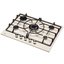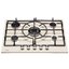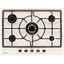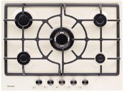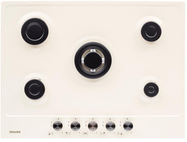Варочная панель оснащена пятью конфорками различной мощности. Продуманная конструкция и расположение горелок обеспечивают комфортную эксплуатацию: даже при использовании сразу всех зон нагрева посуде будет не тесно находиться рядом. Чугунная решетка состоит из трех частей. Их удобно снимать, мыть вручную или в посудомоечной машине. Надежный и прочный материал устойчив к высоким температурам, их перепадам, а также к возможным деформациям. Держатели элегантно гармонируют со стеклянной поверхностью в кремовом исполнении. Для регулировки мощности предусмотрены удобные ручки.