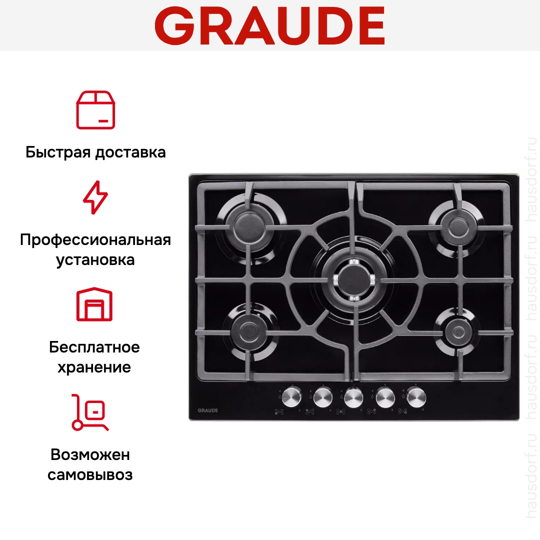 На поверхности располагаются пять эффективных конфорок. За счет качественных форсунок газ равномерно подается в каждую горелку, благодаря чему пламя остается ровным и не прерывистым. Составная трехсекционная решетка легко снимается и устанавливается на место. Держатели выполнены из чугуна, что гарантирует длительный срок службы с сохранением внешнего вида и рабочих характеристик. Чуть шероховатая поверхность создает дополнительную устойчивость посуде, но при этом не царапает дно посуды. Среди преимуществ устройства: опция газового контроля, а также автоматический электроподжиг.