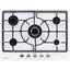 На варочной панели представлено пять конфорок. Продуманное расположение зон нагрева обеспечивает комфорт при приготовлении, так как при использовании сразу всех конфорок посуде не будет тесно. Преимущество модели в наличие WOK конфорки в центре устройства. Она позволяет сократить время приготовления за счет большой мощности, а также экспериментировать с различными блюдами, например, азиаткой кухни. Держатели для посуды выполнены из чугуна. Это прочный материал, устойчивый к механическим и температурным воздействиям. Среди достоинств модели — интегрированный электроподжиг и система газового контроля.