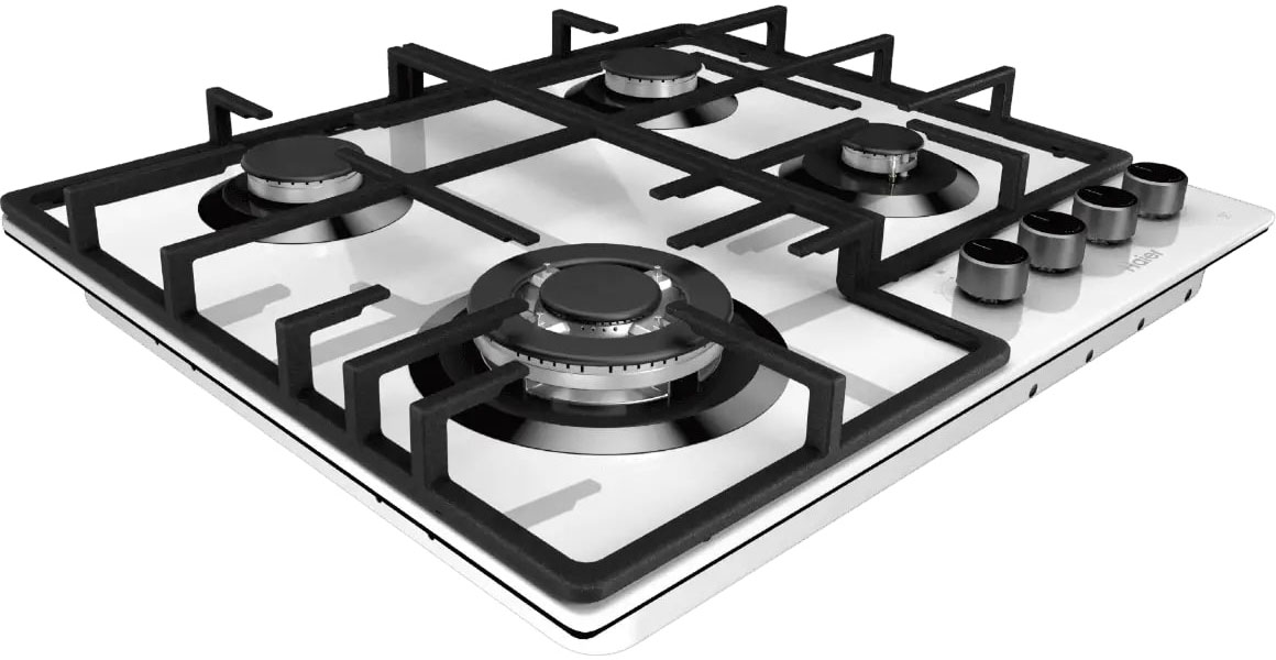 Выбор газовой варочной панели чаще всего обусловлен тем, что в частный дом или квартиру проведен именно газ в качестве обогрева. Работать с этой моделью довольно просто, так как мощность нагрева видна невооруженным взглядом — по силе огня в горелке. Количество конфорок в этой модели: 4.
