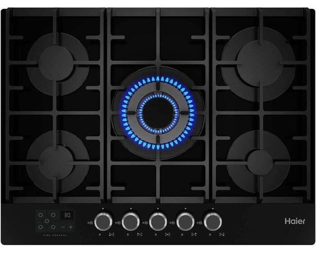 Выбор газовой варочной панели чаще всего обусловлен тем, что в частный дом или квартиру проведен именно газ в качестве обогрева. Работать с этой моделью довольно просто, так как мощность нагрева видна невооруженным взглядом — по силе огня в горелке. Количество конфорок в этой модели: 5. Горелки с двойной короной позволяют увеличивать мощность нагрева в зависимости от диаметра посуды.