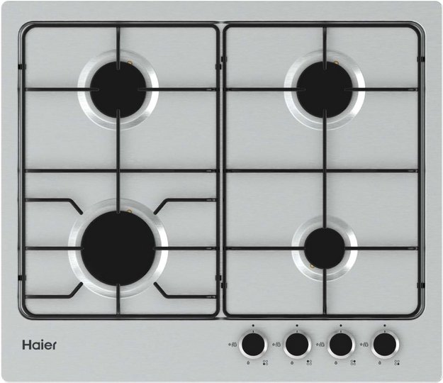 Газовая варочная панель Haier HHX-M64ENX — надежная и стильная модель, выполненная в благородном оттенке нержавеющей стали, с безрамочным дизайном, который подчеркивает современный облик и упрощает уход за поверхностью. Черные поворотные переключатели создают выразительный контраст, добавляя элегантности и визуальной строгости.