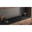 Стеклокерамика представляет собой модифицированное стекло, подвергнутое термической обработке при высокой температуре, — при этом меняется ее кристаллическая структура, придавая материалу особую прочность и долговечность. Поверхности из стеклокерамики смотрятся очень выгодно — как правило, они выпускаются в черном цвете, иногда белом. Цветная стеклокерамика встречается достаточно редко. Гладкая блестящая поверхность легко чистится.