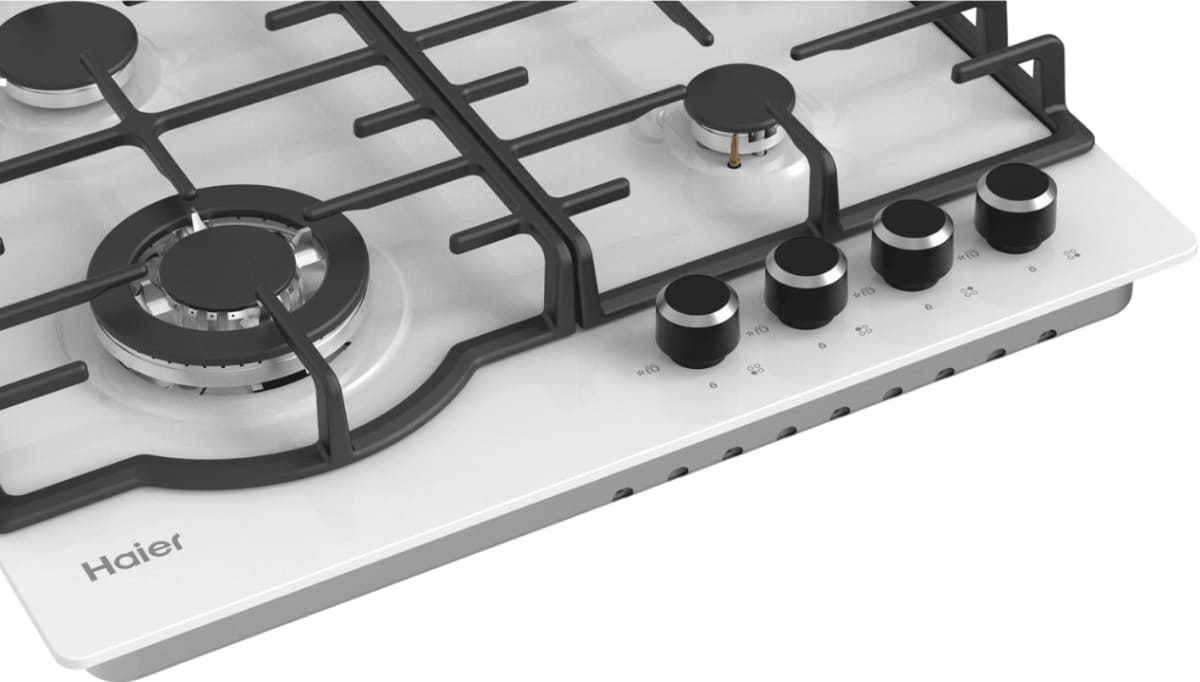 Газовая варочная панель Haier HHX-M64RFW — элегантное и функциональное решение для современной кухни, выполненное в свежем белом цвете и с безрамочным дизайном. Такой подход к оформлению придаёт поверхности воздушность и визуальную лёгкость, позволяя гармонично сочетать её как с классическими, так и с ультрасовременными интерьерами. Фурнитура выполнена в контрастном дуэте: элементы из нержавеющей стали дополнены чёрными акцентами, что создаёт сбалансированный и стильный образ.