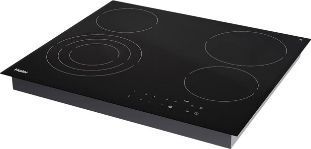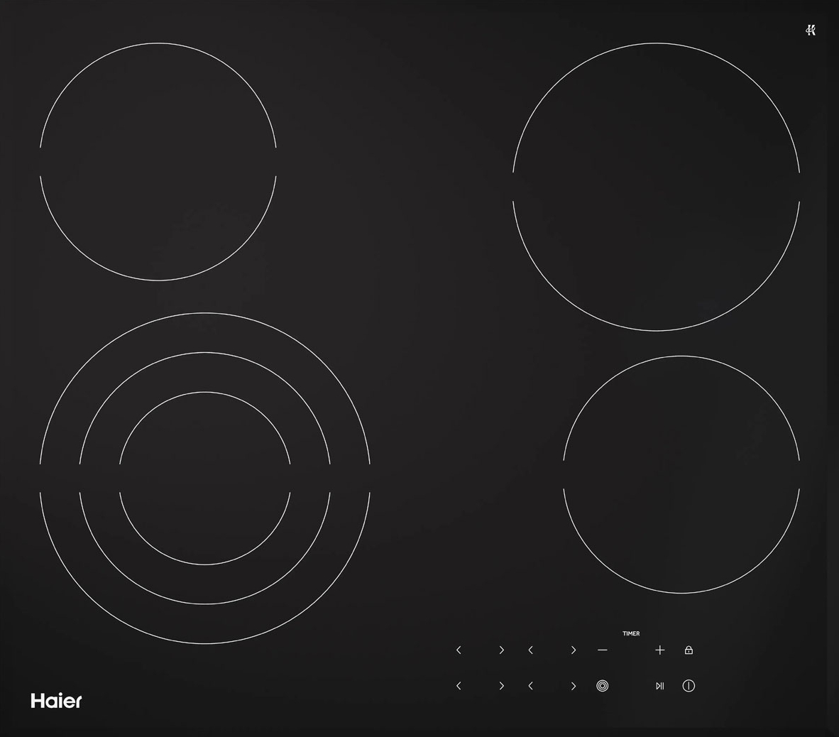 Варочная панель Haier HHY-C64NTVB — современное и функциональное решение для кухни, сочетающее в себе надёжность классической электрической поверхности с элегантным дизайном и передовыми элементами управления. Модель выполнена в глубоком чёрном цвете со скошенными краями, что придаёт ей утончённый, технологичный вид и позволяет легко вписать её в интерьер, где акцент сделан на лаконичность и практичность.